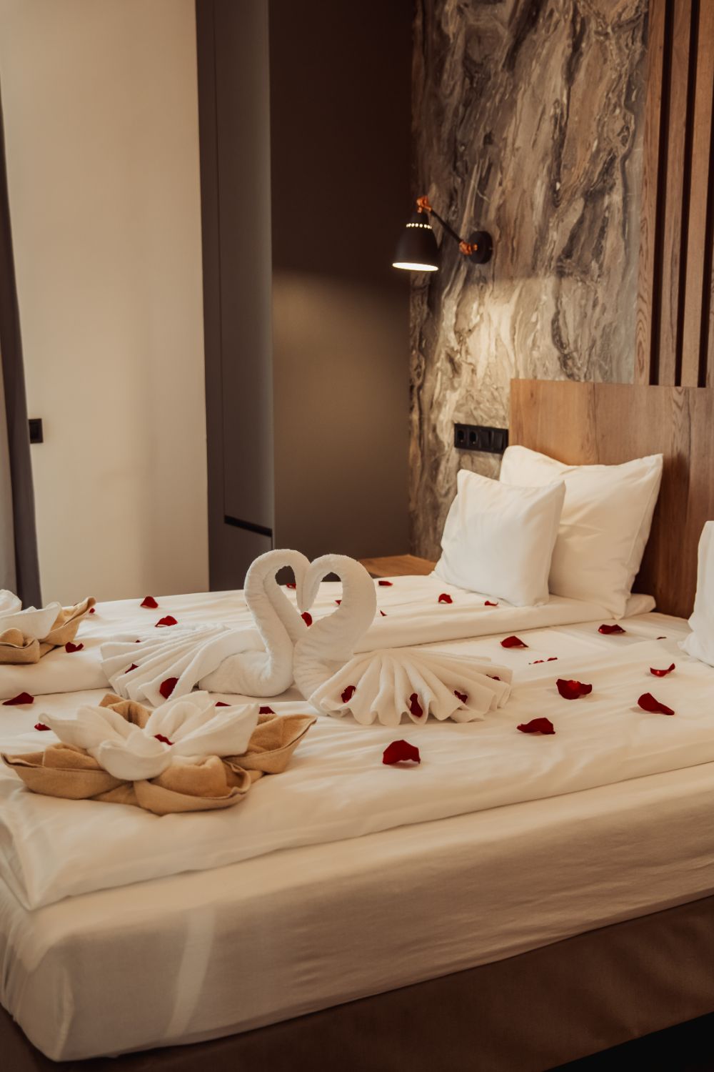 Tudta, hogy nálunk exkluzív szerelmes bekészítésre is van lehetősége? Lepje meg párját egy életre szóló élménnyel: fogadjon Önöket rózsaszirmokba borított apartman és bekészített pezsgő! Kérje tőlünk üzenetben vagy válassza extraként foglalás közben!